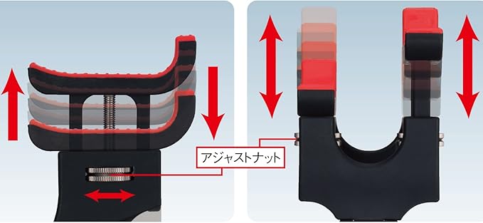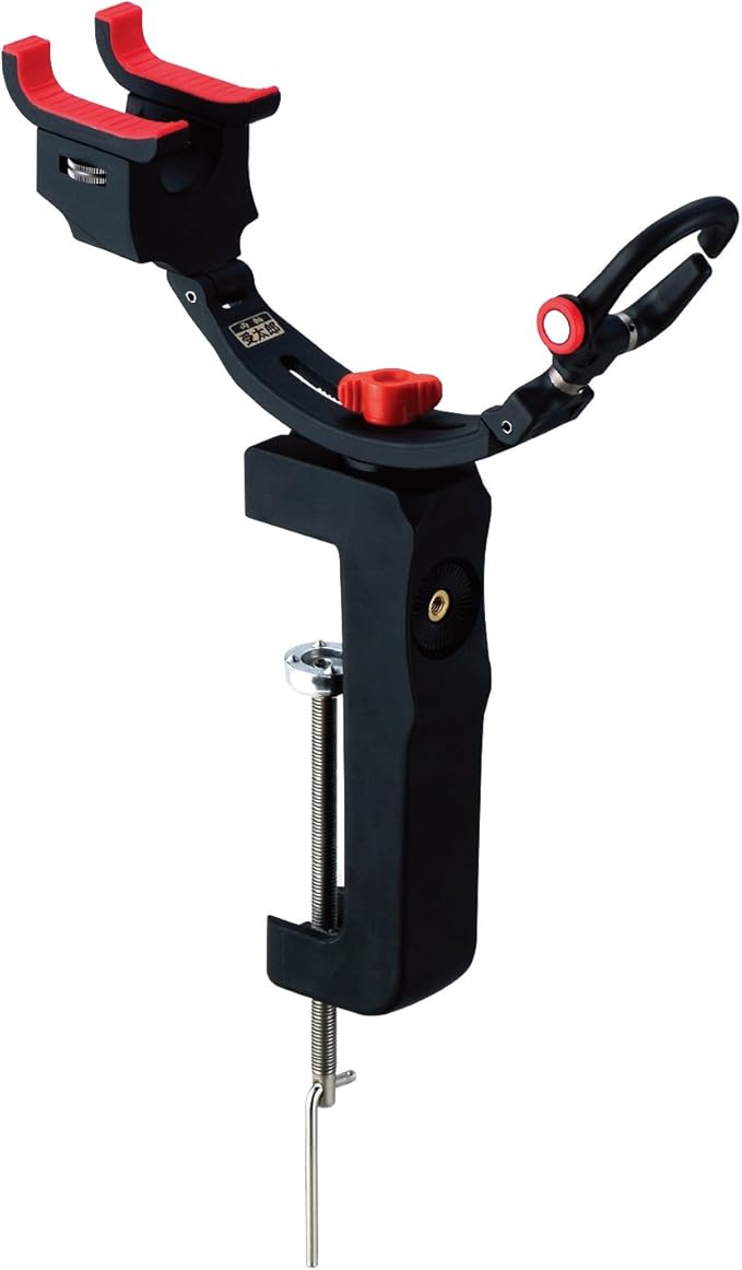 クランプはタテヨコ取付が可能で竿受の首振り・角度調節も自由自在です。