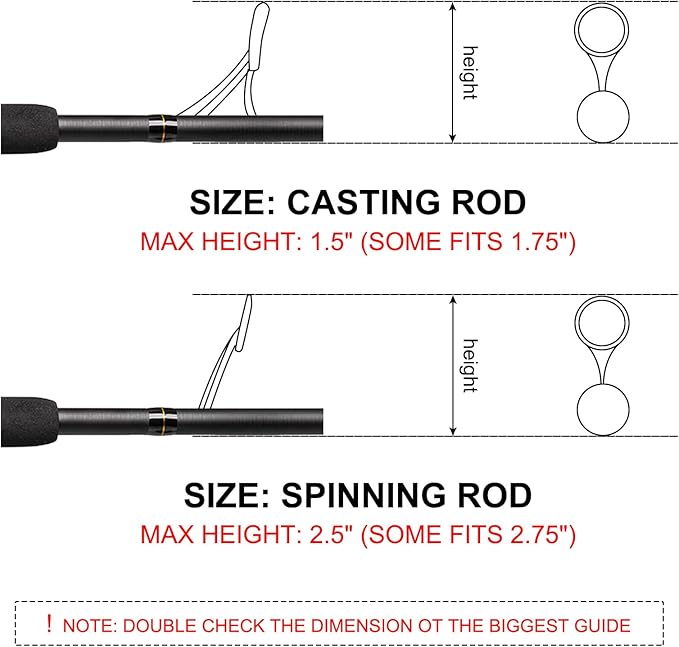 サイズ:170x3 cm/66.9x1.1"(長さ 幅);伸縮範囲:1.9-5 cm/0.7-1.9";パッキングリスト:2個 x 釣りロッドスリーブカバー