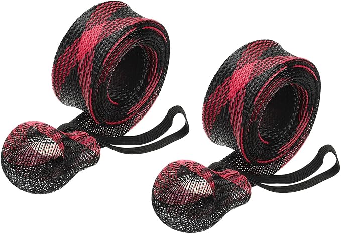 PATIKIL 67"ロッドソック 2個の釣りロッドスリーブカバー 編み込みメッシュポールプロテクターグローブ スピニングロッド フライロッド アイスロッド キャスティングロッド用 黒色レッド