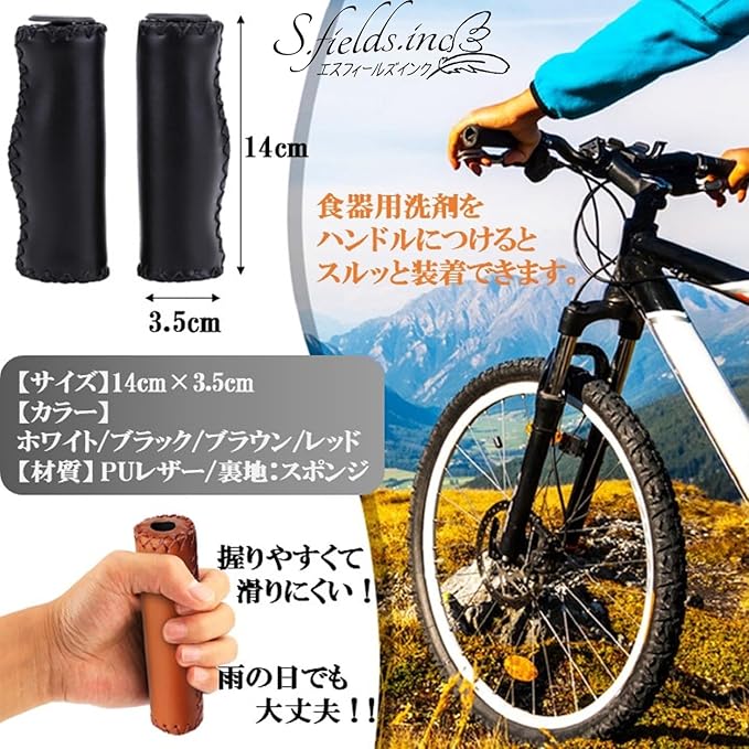 S.fields.inc ハンドルバーグリップ 自転車 PUレザー ステッチ入り フラットバー