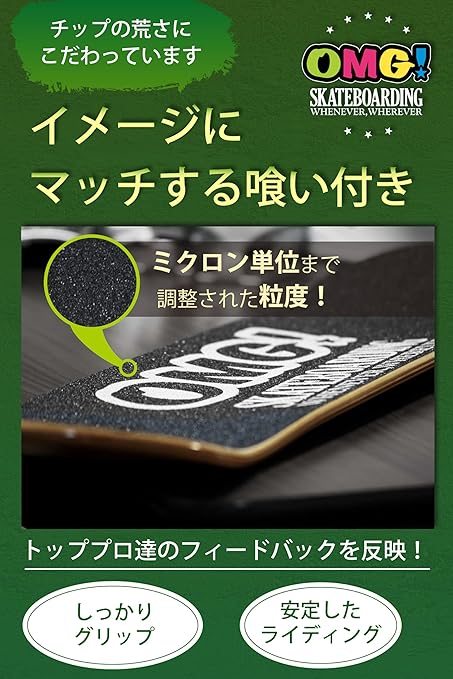 ✅【目の荒さ】永年にわたる多くのトッププロケーター&スーパーキッズ達からのフィードバックを集積し反映することで、ハイパフォーマンスなライディングに必要な「グリップ」と「抜け」を両立し、イメージ通りのデッキコントロールを可能にするために、ミクロン単位で調整しています