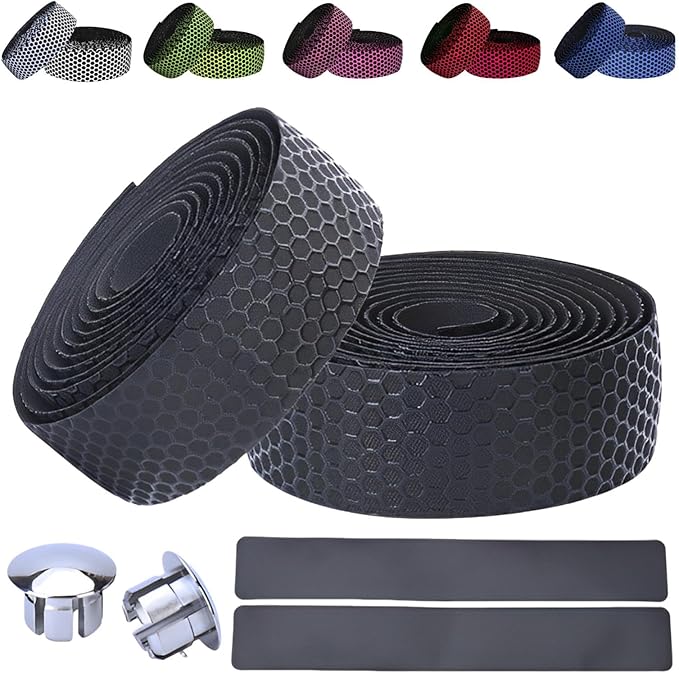 【商品特徴】①取り付け方法簡単!:裏面がシールなので工具不要で使用可能/②快適な握り心地:滑り止め効果により抜群のグリップ力/③汎用性抜群のテープ:自転車・釣り竿・椅子の肘掛けなど多用途/④嬉しい付属品付き:エンドキャップとエンドテープ付き!