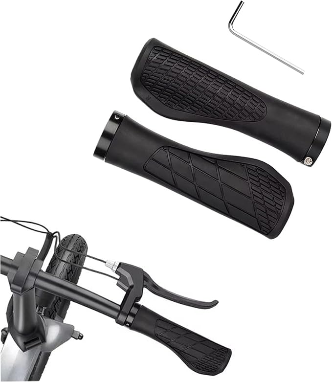を含むほとんどの自転車モデルに適合します。耐久性に優れたゴム素材とアルミ合金のインナーリングを採用しており、滑り止め効果と優れた耐衝撃性を備えています。 人間工学に基づいたエルゴグリップ設計で、長時間のライディングでも手の疲労を軽減します。表面には滑り止めの凸状ゴム粒子が配置されており、路面の振動や衝撃から手を保護します。また、変形しにくい素材を使用しているため、長期間の使用でも形状を維持します。 取り付けは簡単で、付属の六角スパナを使用して自転車のハンドルに固定するだけです。折りたたみ自転車やシクロクロス自転車など、様々なタイプの自転車に使用可能です。ブラックカラーのシンプルなデザインは、どんな自転車のハンドルにもマッチします。 この自転車グリップは、快適性と安全性を求めるライダーに最適な自転車パーツです。クロスバイクグリップやマウンテンバイクグリップとして、また日常使いの自転車ハンドルグリップとしておすすめです。
