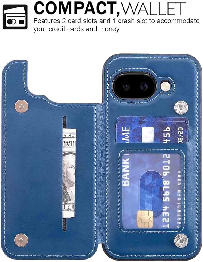 【OULO1】対応 GOOGLE PIXEL 9A ケース pixel9a レザー 手帳型 ケース ピクセル9A カード収納 スタンド機能 携帯 ケース(ネイビーブルー)グーグル ピクセル9A 軽量 薄い 背面 IC カード入れ スマホケース 財布型 カバー Pixel 9a BLUE