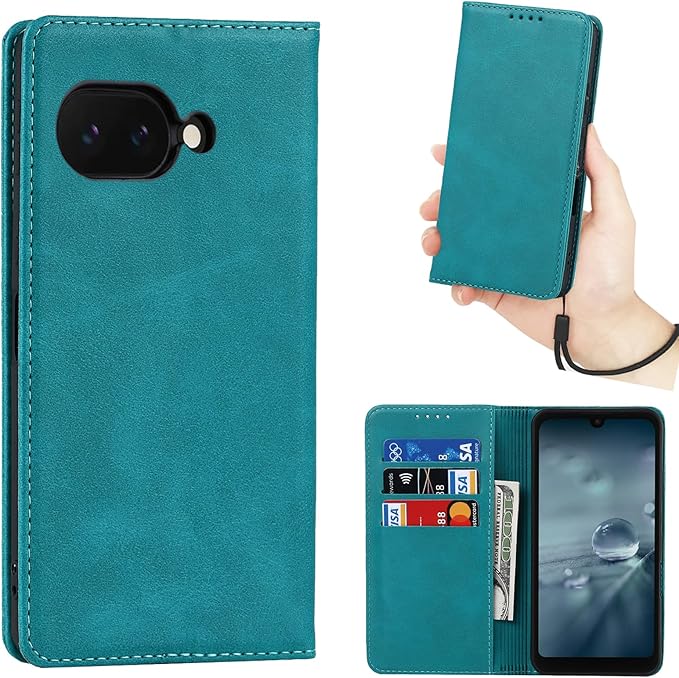Google Pixel 9a ケース 手帳型 【ストラップ 一本付】 適用 Pixel9a ピクセル9a Google Pixel9a スマホケース GooglePixel9a 手帳型 グーグル ピクセル 9a Google 9a カバー case 【Heofuixt】 滑り止め 合成レザー スタンド 手首掛け ハンドストラップ カード入れ マグネット フリップ 落ち着いた色 ターコイズ