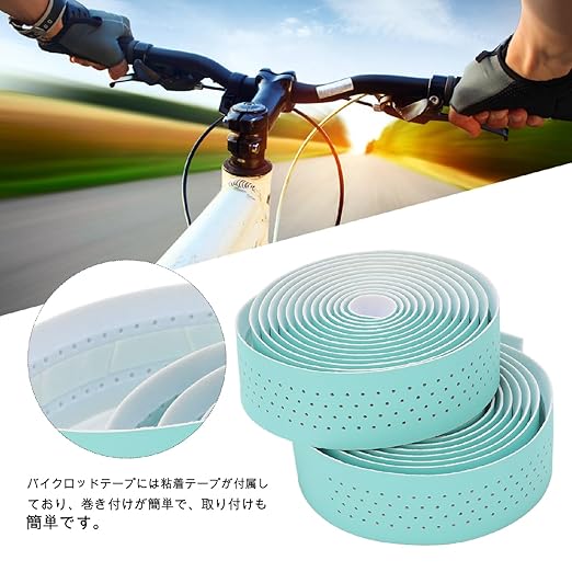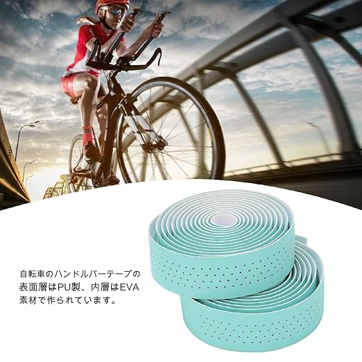 自転車バーテープ 取付簡単 自転車ハンドルバーテープ 滑り止め 快適性 ハンドルグリップテープ 使いやすい 多機能 汗吸収 (ビアンキグリーン)
