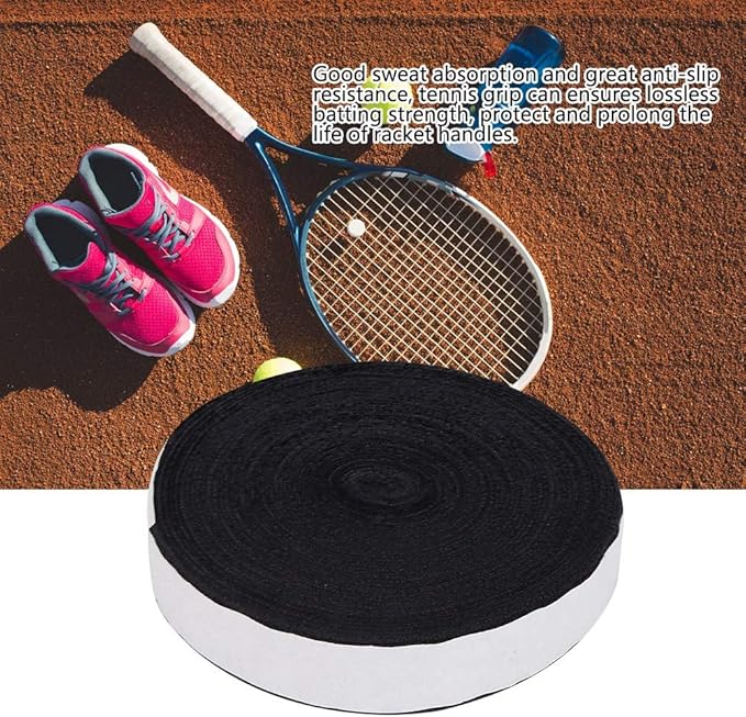 バドミントンラケットタオルグリップ、滑り止め10Mラケットグリップテープ、バドミントンラケット用の 屋外スポーツツールアクセサリーテニスラケットスポーツ用品(black)