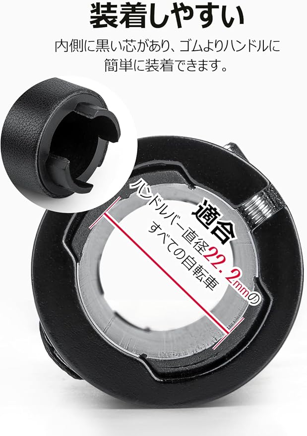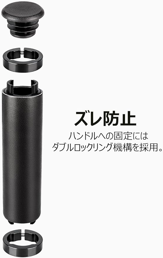 【ズレ防止】 ハンドルへの固定にはダブルロックリング機構を採用しています。しっかり固定するのでずれない。