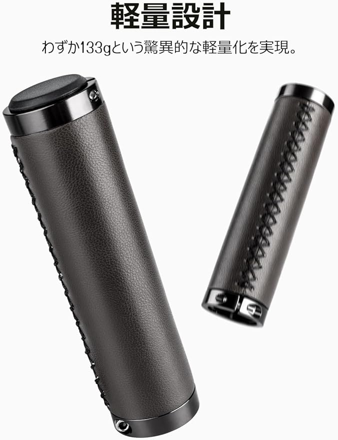 【定番革グリップ】 車体に取り付けてときの美しい革と金属の組み合わせは、上品に自転車をドレスアップしてくれます。