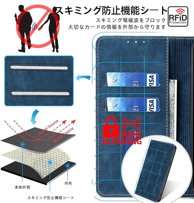 【サイドマグネット】サイドマグネット式なので、磁気カード類への影響しにくくて、カバンの中でもカバーが開きません。RFID耐磁性材料を追加し、クレジットカードの盗難を効果的に防ぎ、不正な方法で盗難スキャンを防ぎ、より安全なユーザーエクスペリエンスを提供し、個人情報を最大保護します。