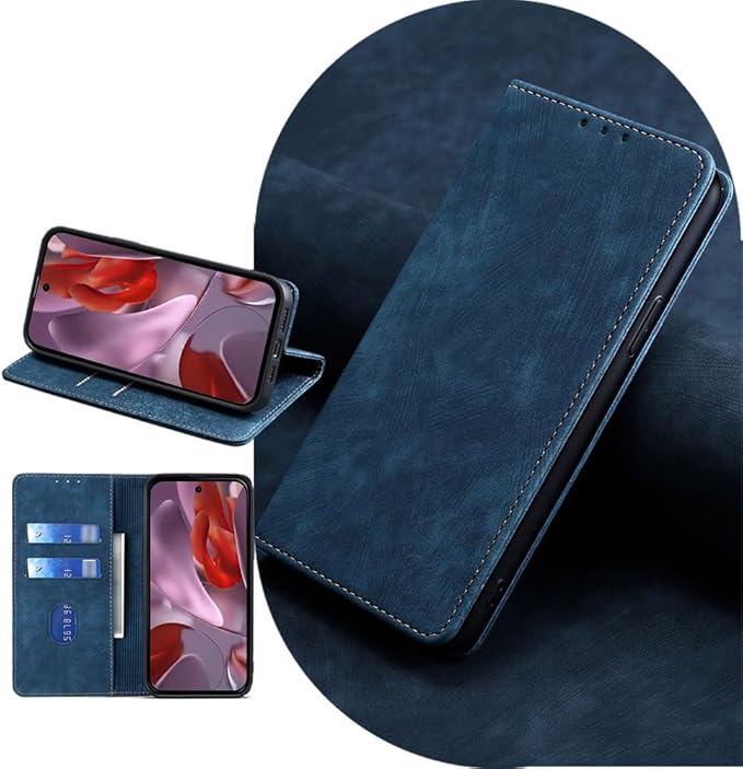 Google Pixel 9a 5G 対応 ケース 防塵 耐衝撃 傷つけ防止 軽量 手作り PUレザー カード収納 RFID磁気防止 マグネット スタンド機能 ケース 手帳型 Google Pixel 9a 5G 用 (ブルー)