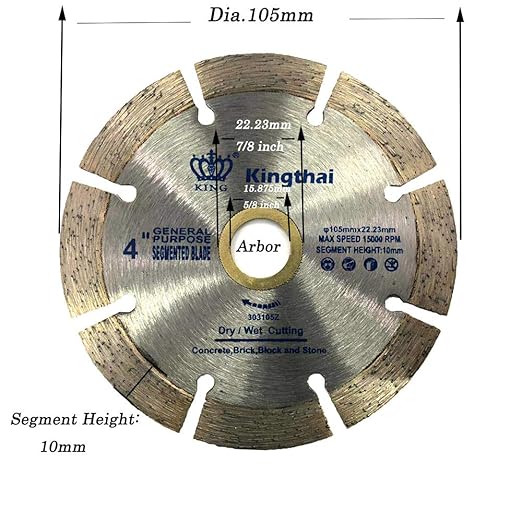 Kingthai グラインダー 刃,ディスクグラインダー 刃,ダイヤモンドカッター ,乾式切削石材用105 mm/4'' ,コンクリートカッター,家庭用およびDIY、石材加工、道路建設用溝入れ工具