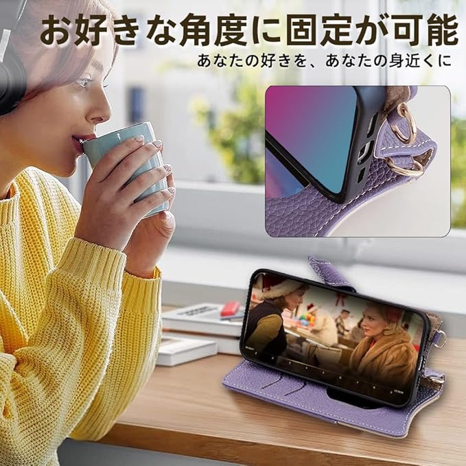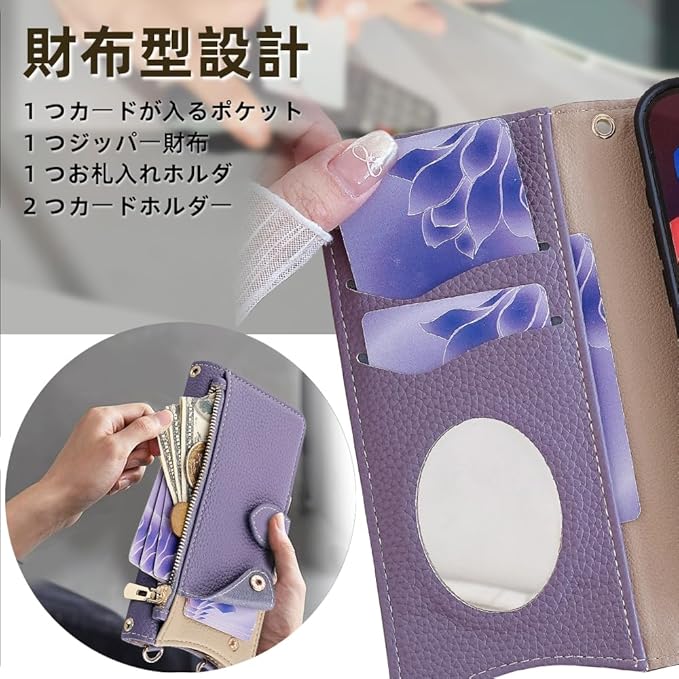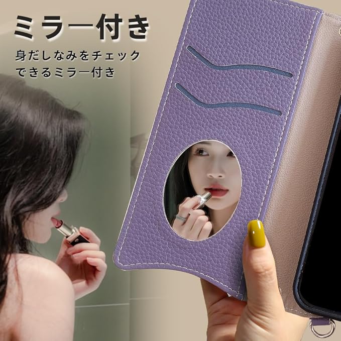 for google pixel 9a ケース 手帳型 財布型カバー スマホケース ピクセル9a マグネット留め 鏡付き 銭入れ マグネット式 化粧鏡 カード収納 斜めがけ ストラップ 首掛け PUレザー 肩掛け 横置きスタンド機能 携帯カバー 全面保護 ファッション 6.3インチ(パープル)