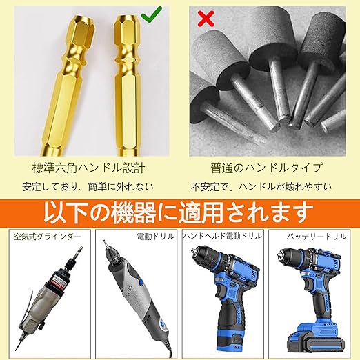 多様な用途: 金属、セラミック、石材など、幅広い素材の研磨、研削、バリ取りに対応、注意する:アルミ合金、銅、木材、硬度の低い材質での使用は推奨されません