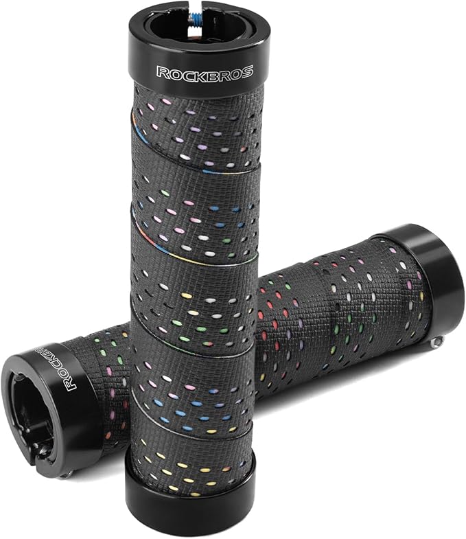 ROCKBROS(ロックブロス)自転車 グリップ クロスバイク対応 ロックオン式 シリコン素材 滑り止め 吸汗 快適 レインボーテープ風 22.2mm 六角レンチ付き ハンドルグリップ 黒/白