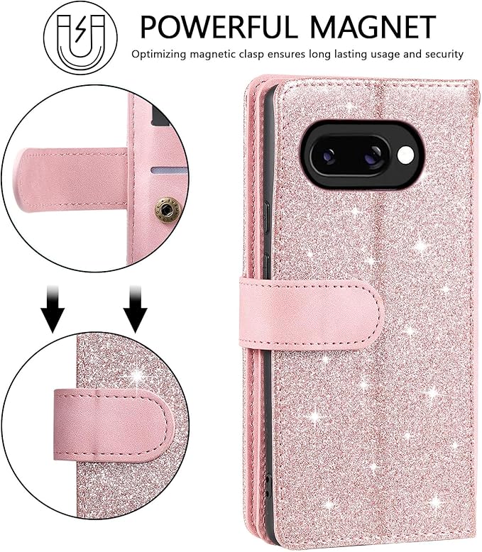 多機能財布:この財布 Google Pixel 9a ケースは9つのカードスロットと1つのキャッシュスロットがあり、かさばる財布を持ち運ぶことなく、IDカード、クレジットカード、現金を持ち運ぶことができます。また、ジッパーウォレットポケットは、コインや紙幣を便利に収納できるようにデザインされています。