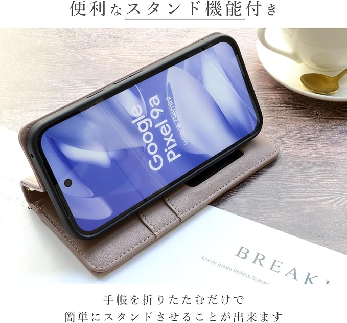 【高機能なスマホケース】マグネットによる開閉サポート機能付きで、留め具が無くて使いやすいです。カードは2枚収納可能で、かつサイドから収納できるポケットも付いており、基本的な収納機能を完備。簡易なスタンド機能と、ストラップホールも付いております。