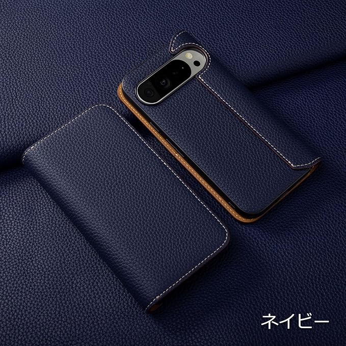 COGURE 互換 Google Pixel 9a 手帳型 ケース スマホケース 本革 シュリンクカーフレザー カード収納 ABS&TPU衝撃保護ケース 耐衝撃 液晶保護 磁石なし 専用ボックス付き COGPH-pi ネイビー