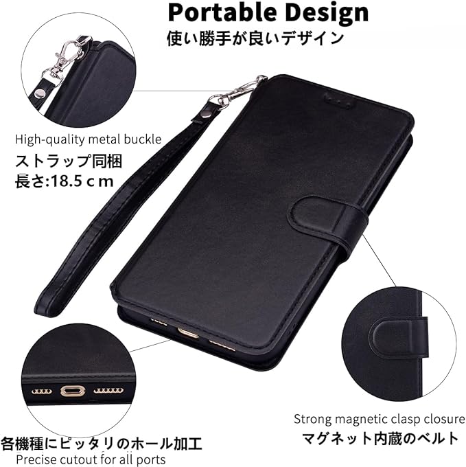 【ポイント1:高品質PUレザー】薄型で軽量化のスマホケースです。外側のカバーには手触りがとても良い高品質の合成レザーを採用します。内側のスマホホルダーは柔軟なTPU素材を採用したソフトケースとなります。汚れにくくて指紋防止の特徴を持っております。耐衝撃の二重構造で落下の衝撃をうまく吸収します、本体をしっかりと守ります。