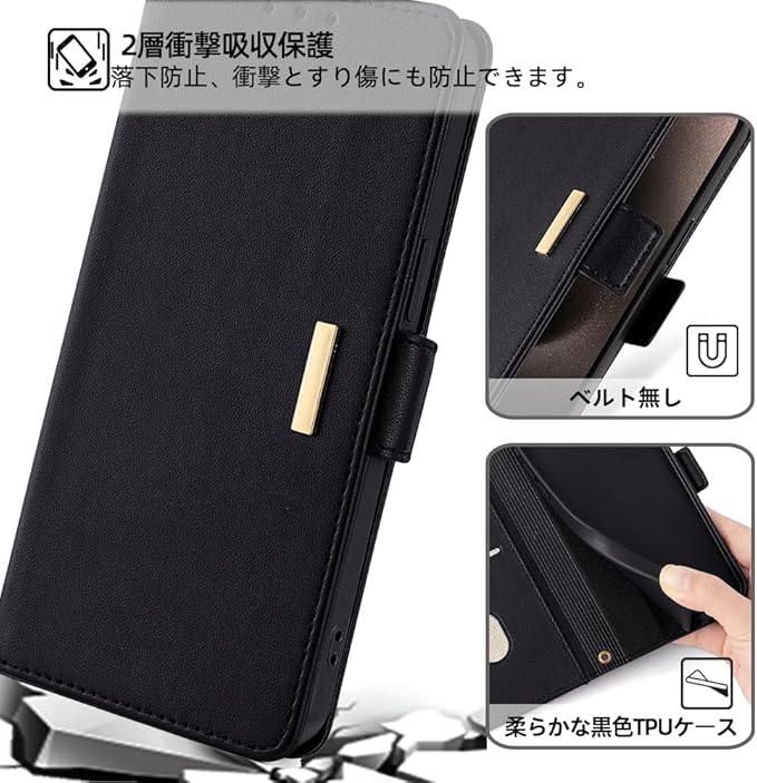 【上質な素材とスタンド機能】外部は上質なPU素材を採用しており、普通のレザーより、耐熱性と柔軟性を一層アップされ、肌のような手触り、夏でも手汗で変な匂いが出てきてません。インナーケースはソフトなTPU素材で、全面保護を与える同時に着脱しやすいです、スマホ本体への損傷の心配ありません。スタンド機能を搭載しており、お好きな角度を調整でき、両手が解放され、お気軽に読書や動画視聴を楽しむことができます。