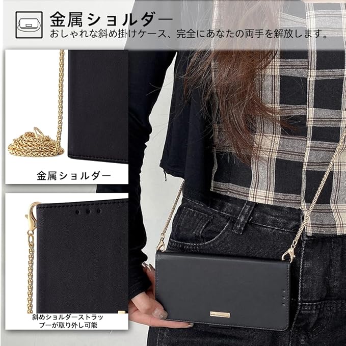 2種類のストラップ付き:▶肩掛けのストラップ 全長120 cm。肩掛けケースになれます。高級感漂う仕様、スタイリッシュな外観で、金具の装飾が美しさと上品さを漂わせてます。斜めがけ、肩掛け、通勤、旅行、犬の散歩、山登り、海へ行く、買い物、外食、重い荷物を持っている時、子供を連れて外出する時もスマホを紛失すること心配なく両手が解放されます。(ケースだけが必要な場合、チェーンが取り外し可能です) ▶ハンドストラップ ハンドストラップを自由に上下ストラップ穴を付ければ、いつでも落下防止できます。