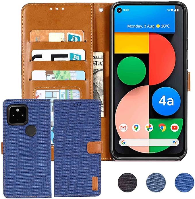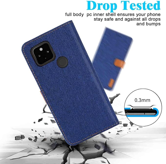 【 Anrek 】Google Pixel 4a 5G / Pixel 5XL 対応 Google デニム材料 手帳ケース (ブルー) グーグル ピクセル4a 5G pixel5xl pixel4a5g ケース カバー 手帳型 カード収納 サイドマグネット スタンド機能付き スマホケース 財布型 耐衝撃 耐摩擦 保護ケースPIXEL4A 5G NAVY