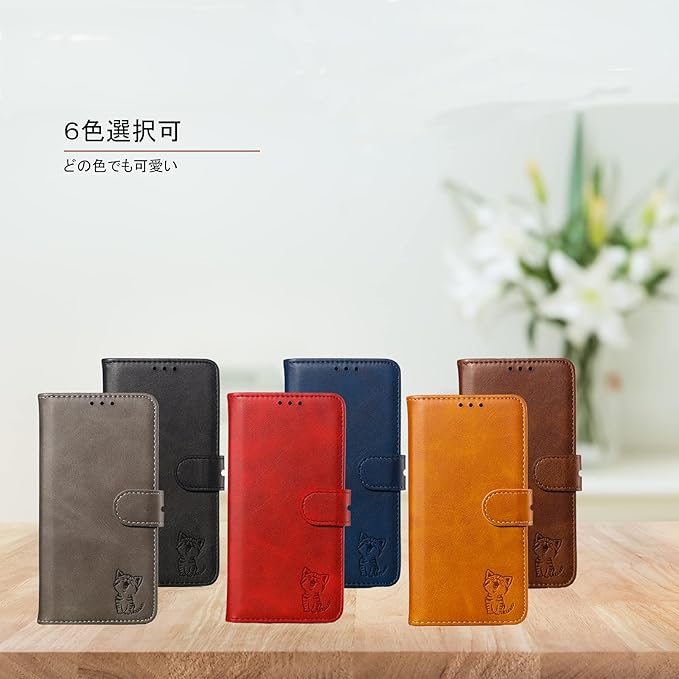 【素材:高級PUレザーとアップグレードしたTPUケース】本製品は厳選されたPUレザーを採用し、エンボスの猫柄が特徴です。レザー自体が水分をはずみ、汚れやシミが付きにくい仕様です。肌触りのような感じで、手汗が出てきても滑りにくいです。インナーケースは弾力あるTPU製で、ケースの一番右したのところにストラップホールもあり、お好きな小物とかお付けられます。柔らかく耐衝撃が強くなり、着脱もスムーズで、不意な落下からスマホをしっかりお守れます。