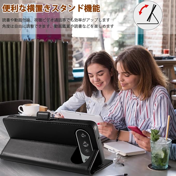 5.【横置きスタンド機能】Google Pixel 10 5G / Google Pixel 10 Pro 5G 対応ケースの背面から折り曲げて、横置きのスタントとして活用し、バランスがよくスマホをしっかり支えて、読書や動画勿論、視聴ビデオ通話等でも効率がアップします。横置きスタンド機能た付いて、お好きな角度で動画鑑賞や読書などを楽しめます。