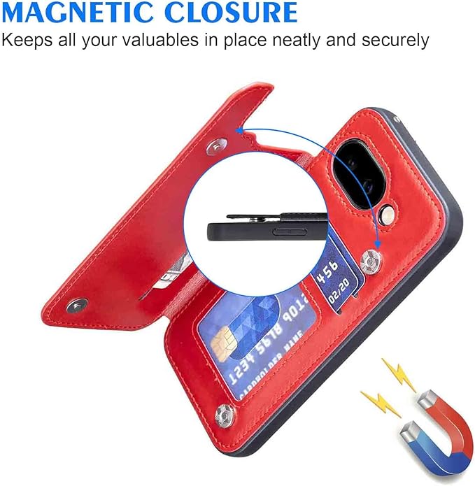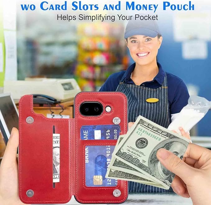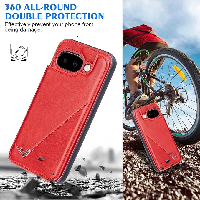 【Geshh】Pixel 9A docomo au Softbank レザーケース(レッド)耐衝撃 財布型カバー カード収納 横置きスタンド機能 開閉式 ストラップ付き 薄型レザーケース 対応 グーグル ピクセル9a pixel9a ソフトバンクpixel9a RED