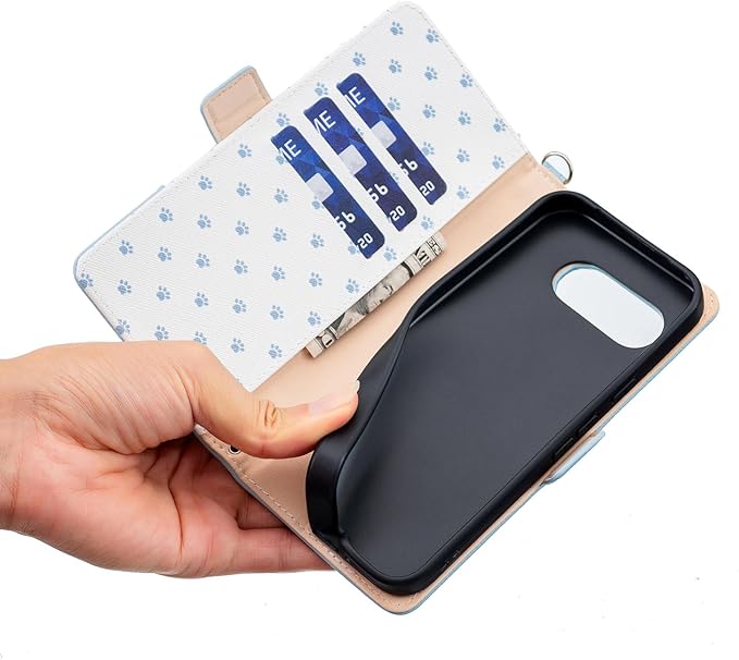Case for 電話カバー Google pixel 9A対応カバー グーグル ピクセル9aケース手帳型かわいい 猫の足跡(NENGks )ストラップ付き マグネット式磁気 全面保護 スタンド機能 カード収納 財布型 (A2-青, Google Pixel 9a)