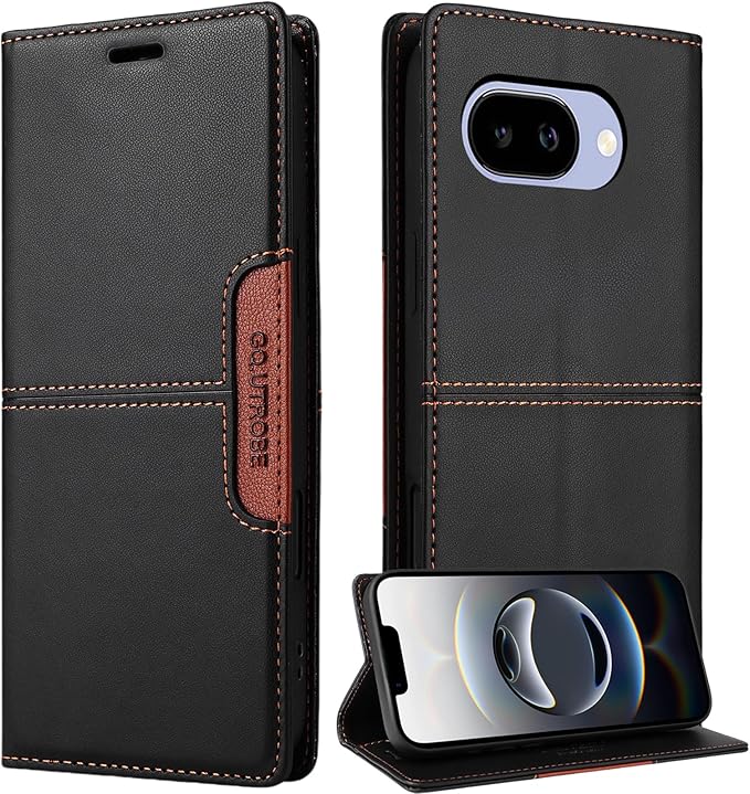 Google Pixel9A ケース 手帳型 ピクセル 9a スマホケース 財布型 [RFIDブロッキング] カード収納付き 耐衝撃 マグネット式 スタンド機能 全面保護 (ブラック, Google Pixel 9A)