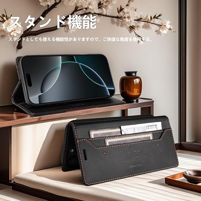 【高級PUレザー|耐衝撃&全面保護】 表面は高級PUレザーで汚れに強く、内側の柔軟TPUバンパーが衝撃を吸収。画面を360度保護し、落下や擦れから Pixel9a を守ります。