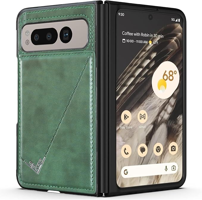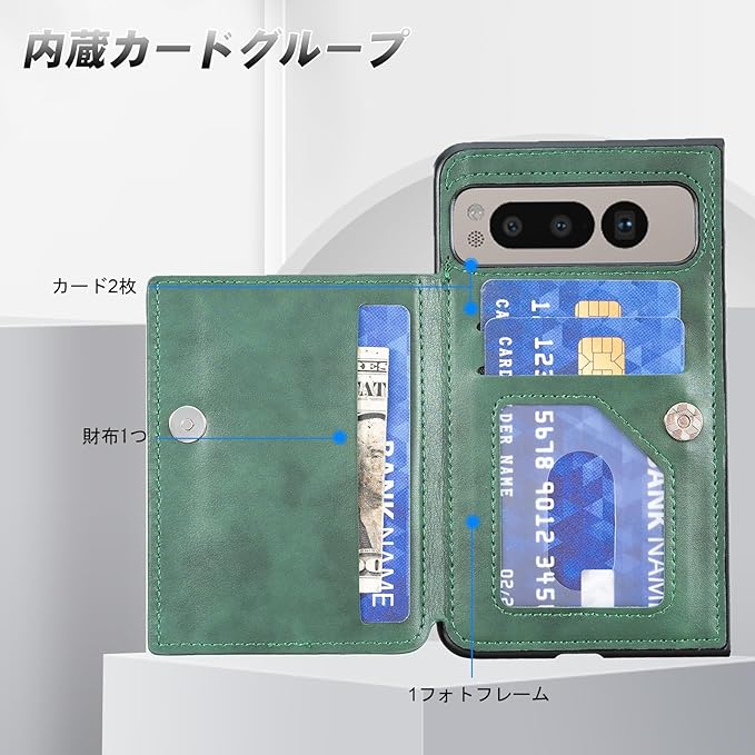 【 Antimam 】背面カード 手帳型ケース 対応 Google Pixel fold スマホバックカバー ( ダークグリーン )手作り お洒落シンプル 軽量 耐久性 カード収納 スタンド機能付き 財布型 落下防止 グーグル ピクセル フォールド スマホ ケースPixel fold 5g GREEN