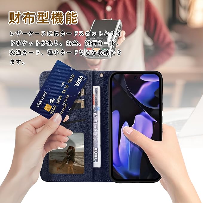 レザーケース Google Pixel 9a 5G 対応 手帳型ケース Google Pixel 9a 5G 用 ケース 携帯カバー スマホケース 財布型 カード収納 カメラ保護 スタンド機能 ストラップ付き 耐衝撃 傷防止 全面保護 (ダークブルー)