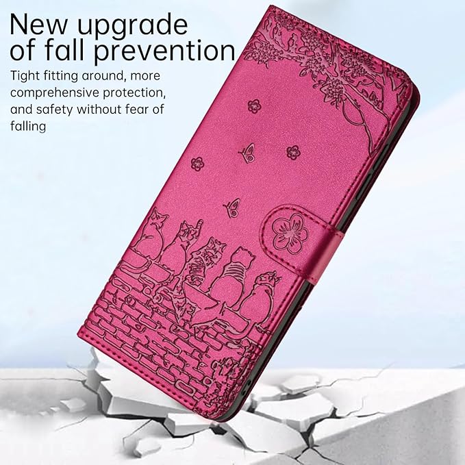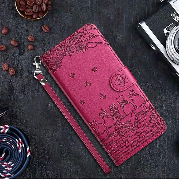 対応 Google Pixel 8A ケース 手帳型 可愛い 猫柄 グーグル ピクセル 8A 携帯カバー 蝶の花柄 スマホケース おしゃれ カード入れ 財布型 Pixel 8A カバー 動物柄 カード収納 スタンド機能 軽量 便利 内蔵マグネット式 紫赤 純色シンプルデザイン - Violet Red