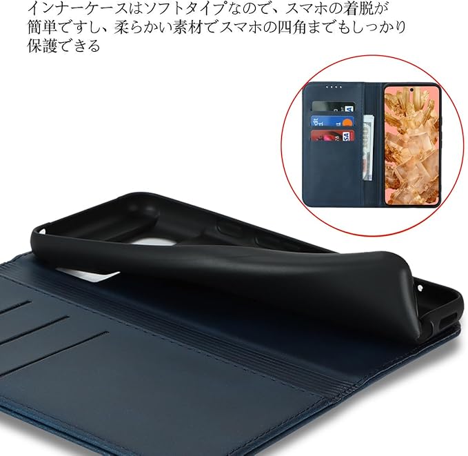 Google用 pixel8 ケース 手帳型 au SIMフリー softbank 全対応 ピクセル8 カバー グーグル ピクセル8 スマホケース 手帳型 カバー pixel8ケース 財布型 適用 case iCoverCase マグネット カードケース 携帯カバー カード入れ スタンド 落ち着いた色 レトロ ネイビー