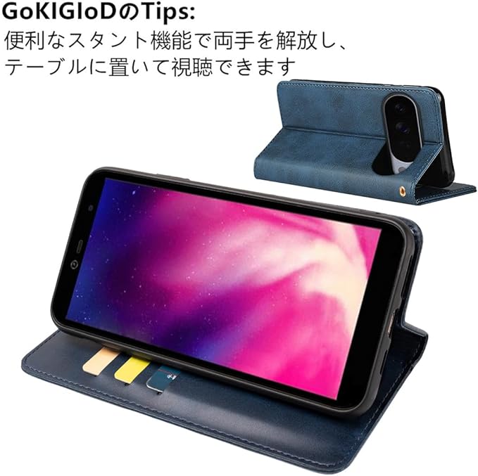 Pixel 10 pro XL ケース 手帳型 ストラップ 同梱 適用 Google Pixel10proXL 手帳ケース グーグル ピクセル 10 プロ XL 手帳 カバー スマホケース 【GoKIGIoD】 財布型 内蔵マグネット 弱磁 カード収納 ストラップホール スタンド機能 耐衝撃 レトロ ネイビー