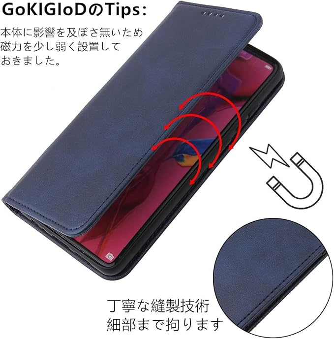 【機能性②】:マグネット内蔵のタイプです、使用上、指への支障も無くなって、一見からするととてもシンプルな感じがします。精密な縫製技術を重ねて出来上がった手帳型で、二重カバーのデザインにより、大切な携帯をキズ、汚れ、衝撃からしっかりと保護できます。