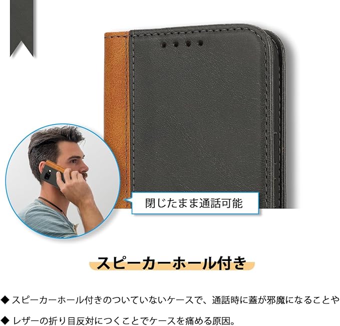 【マグネット式】内蔵マグネットの手帳型ケースです。カバーに使われているマグネット式の設計により、スマートフォンをしっかり固定できます。閉じたときにも電話の音は聞こえるので、持ち運びも簡単で使い勝手がよいです。お年寄りやお友達へのプレゼントにも最適です。