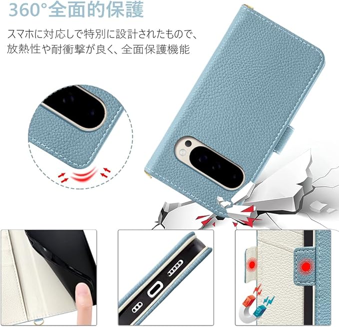 【人気の理由】❶大人かわいいカラーを取り揃えたツ-トンカラーケース。❷Google Pixel 9手帳型ケースの場合はカバーが画面を覆っているため、画面から直接地面に落ちる場合は、スマホの画面を保護してくれるので安心といったイメージがあります。ポケットの中やバッグの中での誤操作を防止。❸サイドマグネット式なので、磁石はケースの側面にあり、カード面に直接接しないので、磁気カード類が壊れる心配がありません。両開きのマグネットベルトタイプで、カードを入れてもペラペラしなくて、ちゃんと締まることができ、鞄の中でカバーが開きません。