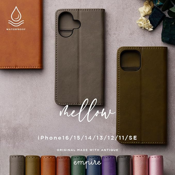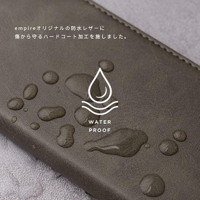 ここでしか手に入らないempireオリジナルメイド。 本革に限りなく近い質感と風合いの最高級の防水合成皮革レザーに擦れに強いハードコート加工を施したempireブランドの手帳型スマホケース。ビジネスにもカジュアルにもフォーマルにも合うデザイン。メンズ、レディースどちらでも使える万能なカラバリ。便利なカードポケットを備えた手帳型ケース。