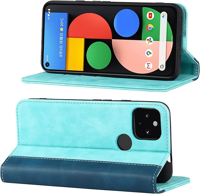 Google pixel 5A 5G ケース 手帳型 pixel5A ケース 手帳型 SIMフリー softbank 全対応 ピクセル 5A カバー グーグル ピクセル5A 5G カバー pixel5A 5G スマホケース 手帳型 カバー pixel5Aケース 財布型 適用 case iCoverCase 合成皮革 内蔵マグネット 携帯カバー スタンド機能 落ち着いた色 2色組合せ レトロ ブルー ターコイズ