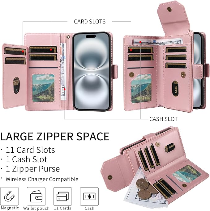多枚カード収納:この ピクセル9a スマホケース ポケットは全部で13個、カードスロットが6つ、大きなポケットが1つあります。スマホケースを開くと、カードホルダーが5つと大きなポケットが1つあります。駐車券、名刺、銀行カードを収納できます、小銭など、外出時に余分な財布を持ち歩く必要はありません! 毎日の通勤をもっと便利に。ショッピング、旅行、仕事、あらゆるシーンに最適です。