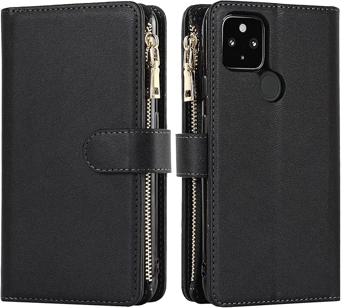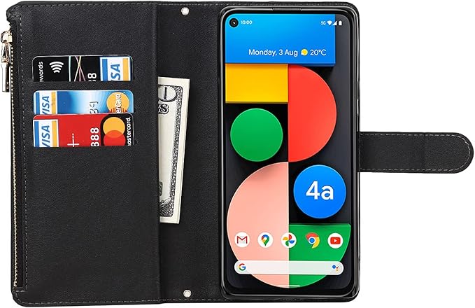 for Google Pixel 4A 5G ケース for google pixel4a 5g 縄掛けケース 手帳型 財布型 ICカード コインポケット ストラップ付き カード 収納 小銭入れ ファスナーポケット付き PUレザー 6色ブラック