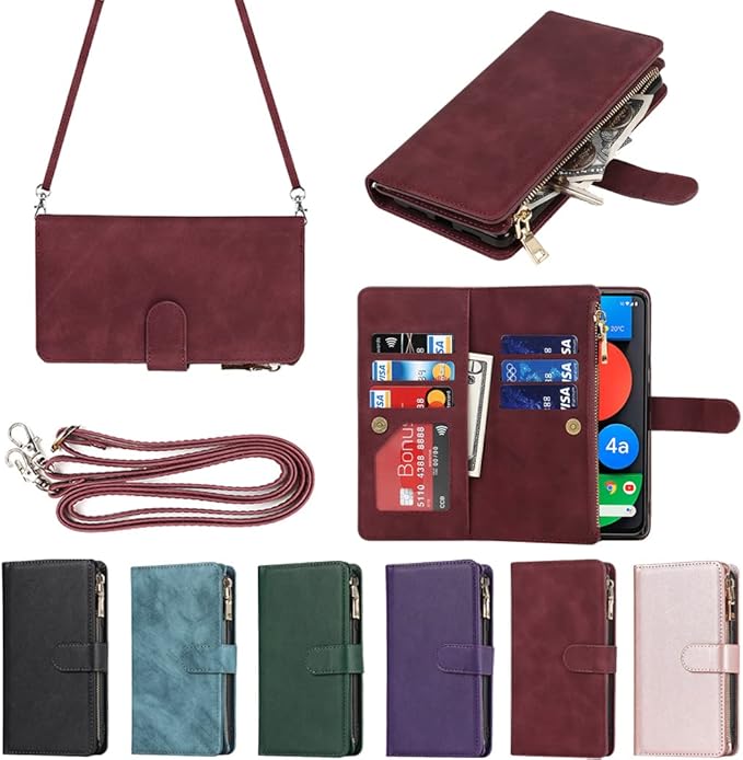 for Google Pixel 4A 5G ケース for google pixel4a 5g 縄掛けケース 手帳型 財布型 ICカード コインポケット ストラップ付き カード 収納 小銭入れ ファスナーポケット付き PUレザー 6色レッド