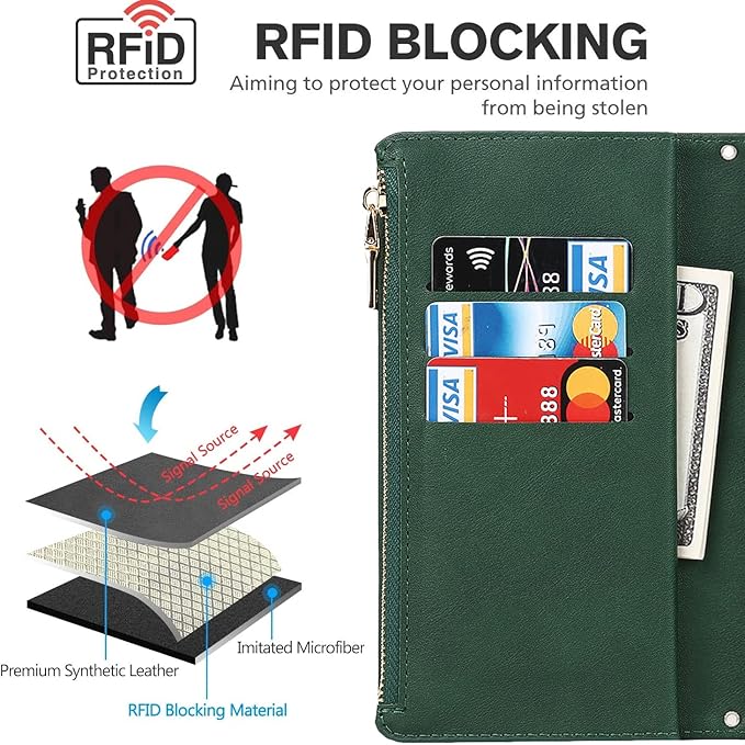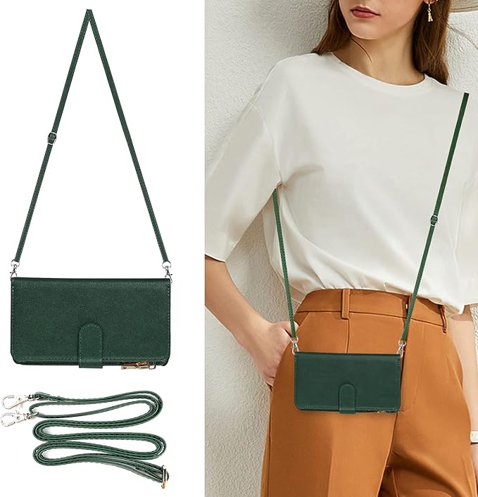 Eastwave for Google Pixel 5A 5G ケース for google pixel5a 5g 縄掛けケース 手帳型 財布型 ICカード コインポケット ストラップ付き カード 収納 小銭入れ ファスナーポケット付き PUレザー 6色グリーン