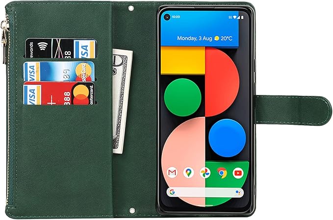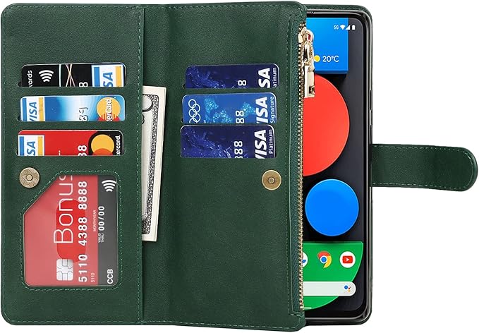 for Google Pixel 5A 5G ケース for google pixel5a 5g 縄掛けケース 手帳型 財布型 ICカード コインポケット ストラップ付き カード 収納 小銭入れ ファスナーポケット付き PUレザー 6色グリーン