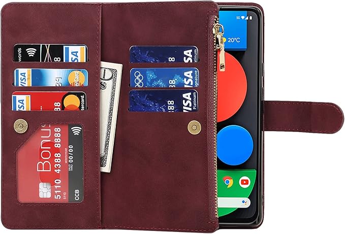 for Google Pixel 5A 5G ケース for google pixel5a 5g 縄掛けケース 手帳型 財布型 ICカード コインポケット ストラップ付き カード 収納 小銭入れ ファスナーポケット付き PUレザー 6色レッド