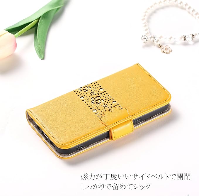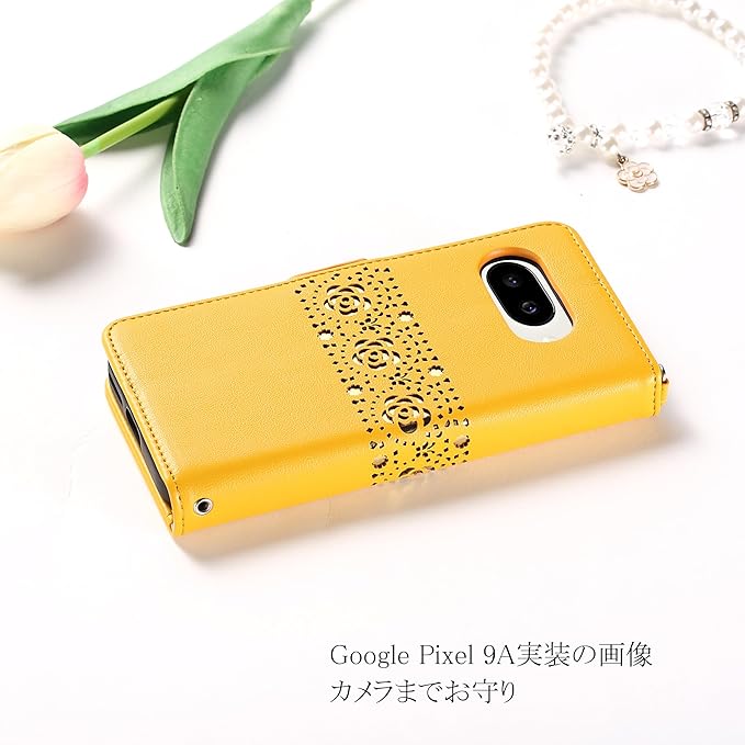 対応 Google Pixel 9A スマホケース 手帳型 シンプル 花柄 カード収納 個性的なデザイン 透かし彫り工芸 マグネット式 Google Pixel 9A 手帳型カバー 薄型 軽量 耐衝撃 ぐーぐるpixel 9A 財布型ケース 鏡付き 使いやすい 上品レザー 明らか スタンド機能 男女通用 ソフト手触り スタンド機能 ファッションスタイル イエロー