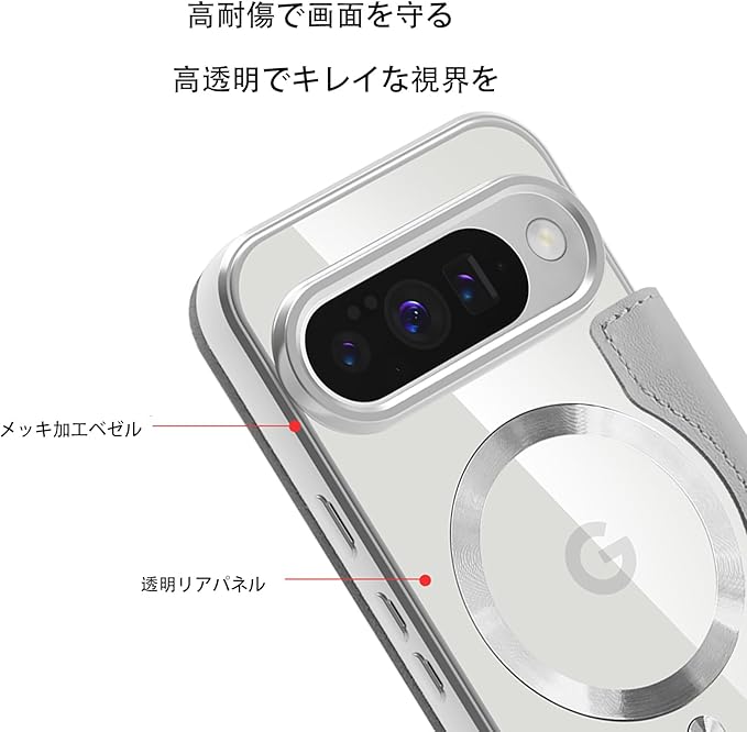 【対応機種】Google Pixel 10/10 Pro専用デザインのフリップ型カバーです。 上質な手触りと高い耐久性を兼ね備えた素材を採用。前面は高級感のあるPUレザ背面はクリアTPUで端末全体を保護。MagSafe完全対応の強力磁気リング内蔵で、ワイヤレス充電やMagSafeアクセサリーがスムーズに利用可能。